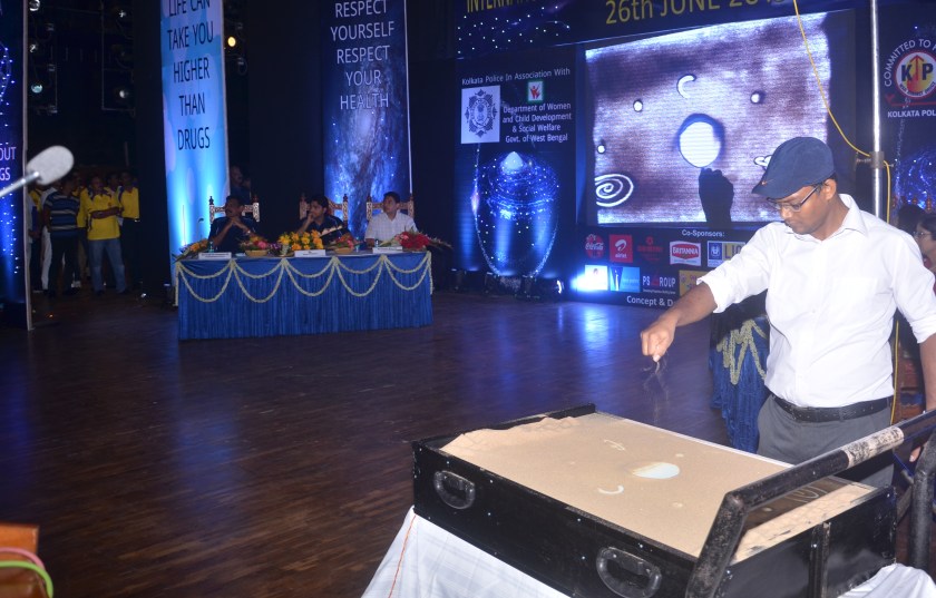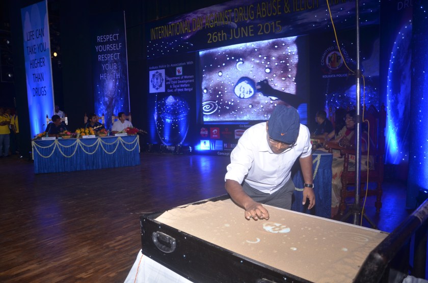 ——Sand Artist Badal Barai in live sand art show.